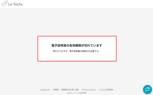 絞り込み条件を「すべての証明書を表示」または「期限切れの証明書を表示」に切り替えると、グレーアウトした状態で表示されます。