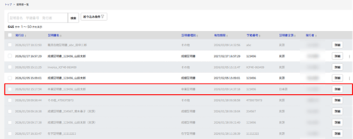 発行した証明書を探す方法はこちらをご確認ください。