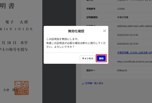 ・【証明書詳細】ページから無効化する場合