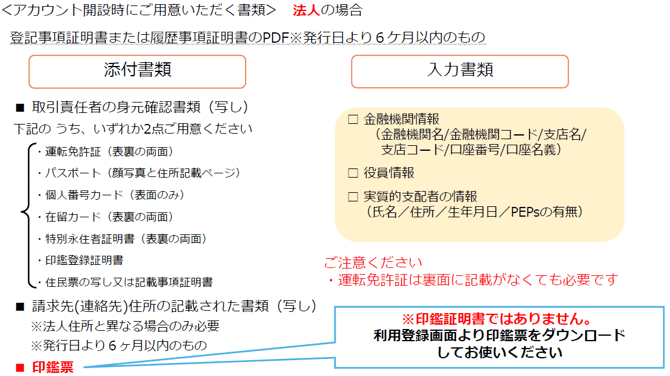 請求先(連絡先)が、「法人住所」と異なる場合のみ、上記書類が必要となります。
